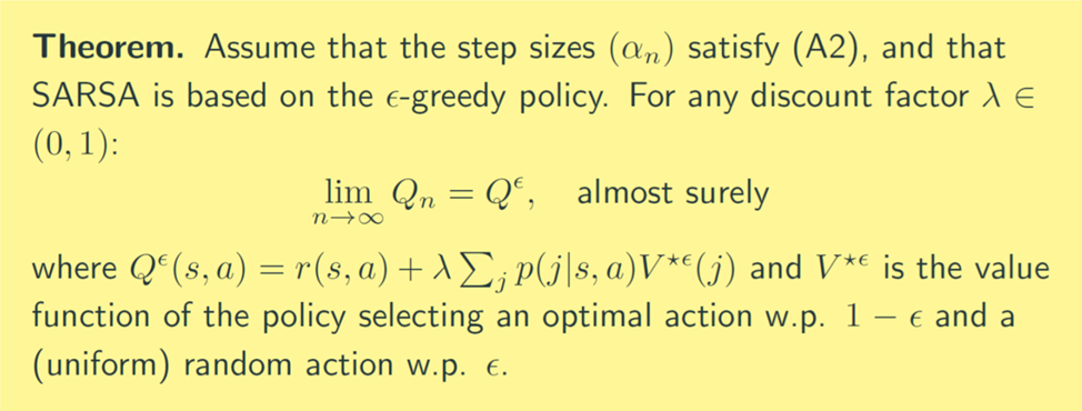 Similar to Q-learning, we’re also worried about bias in the algorithm. There’s a theorem for this: