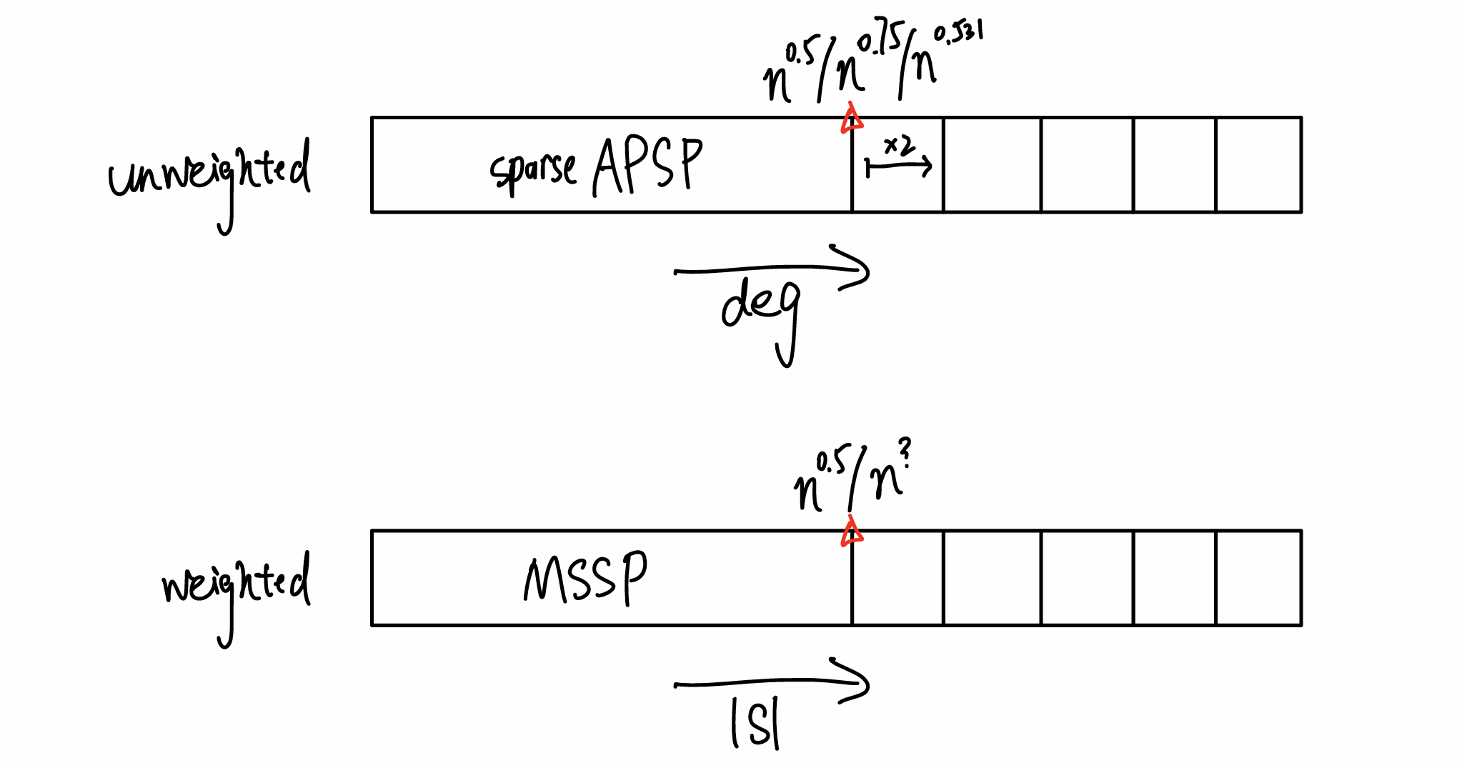 | 无权图做法 | 跑稀疏图 APSP | 找 hitting-set,MSSP + 矩乘 |