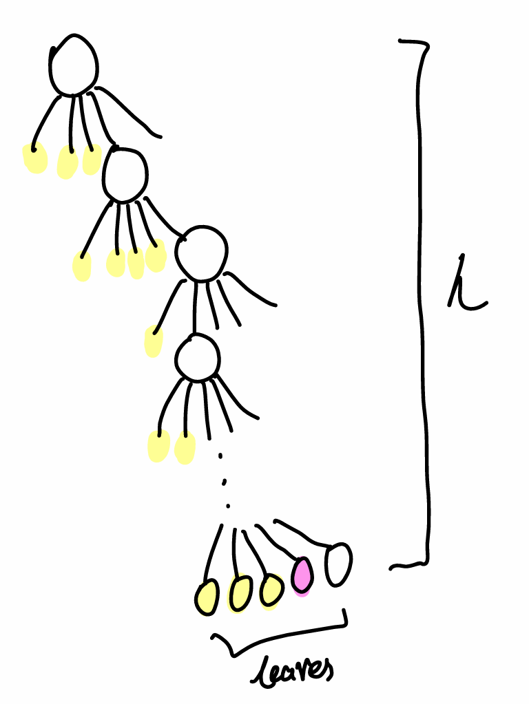 如果把 computation graph 展开,我们可以得到一棵高度为 $\Omicron\big(\frac{t(n)}{b(n)}\big)$,$\Omicron(d)$ 叉的树。尽管看似变得冗余了,但是树上的这一问题有代数做法,这就给了突破口。tree evaluation problem (TEP) 指的是,给定一颗高度为 $h$ 的满 $d$ 叉树,每个节点 $u$ 上有 $b$ 位 $01$ 串 $\text{content}_u$。初始给定叶子的串,以及每个节点由其各儿子串决定其本身串的函数,即 $(\set{0,1}^b)^d\to\set{0,1}^b$ 的函数,求根的串。